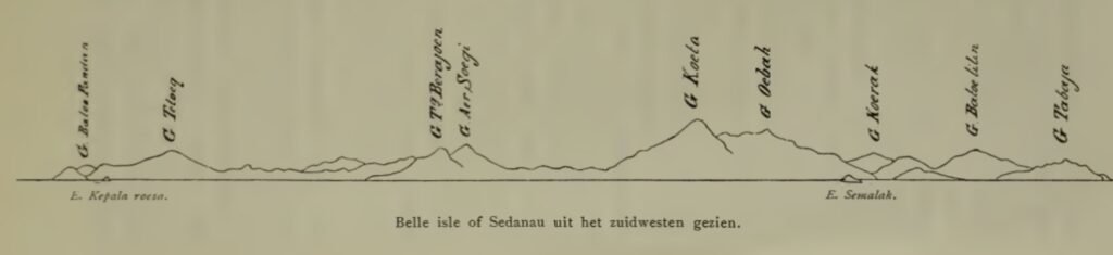 Perlahan, kita kembali ke utara dan pukul sepuluh pagi tiba di Pulau Sedanau, yang ternyata sebenarnya terdiri dari dua pulau. Para perwira Prancis dari kapal korvet La Favorite, yang dipimpin oleh Kapten La Place dan pernah memetakan kelompok pulau Boengoeran, memberikan nama “Belle Isle” untuk pulau ini.