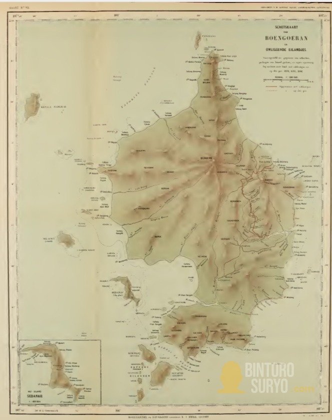 Peta pulau Bunguran dan pulau-pulau di sekitarnya, 1898 (Schetskaart Boengoeran En Omliggende Eilandes).