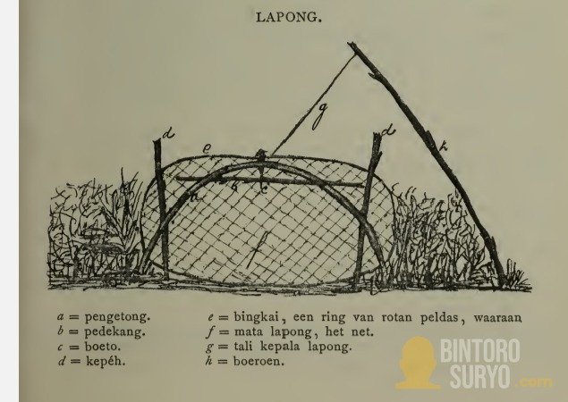 Hewan-hewan itu ditangkap dengan cara mengejar menggunakan anjing ke jaring yang terpasang di antara batang dan ranting pohon, yang disebut lapong, yang akan ditarik rapat dengan tongkat khusus, boeroen, saat hewan masuk ke dalamnya. Cara serupa juga digunakan untuk berburu babi hutan.