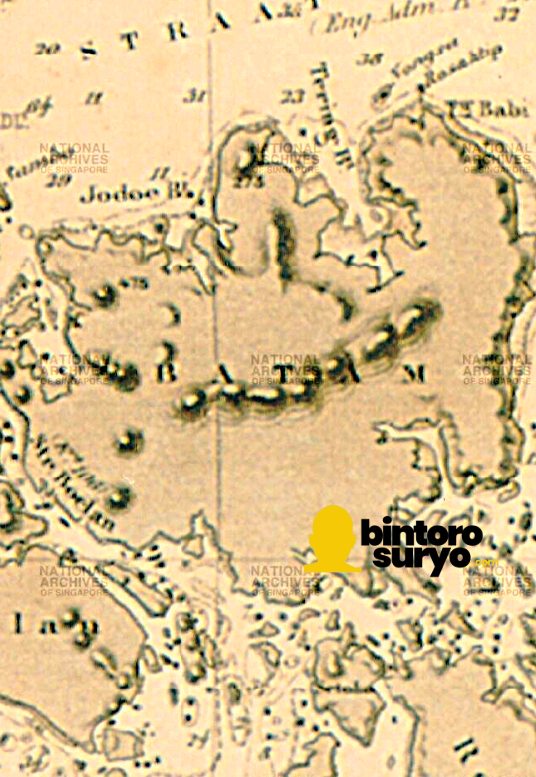 Potongan peta berjudul : “Oostkust Sumatra: Singapoera tot Straat Banka (East Coast of Sumatra: Singapore to Strait of Bangka)” pengumpulan data pada tahun 1820, telah menuliskan nama wilayah ‘Nongsa’ di ujung Utara pulau Batam, sebelum masa kedatangan Raja Issa ke wilayah itu. © National Library Board Singapore/ koleksi pribadi